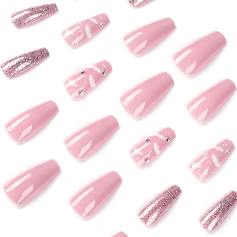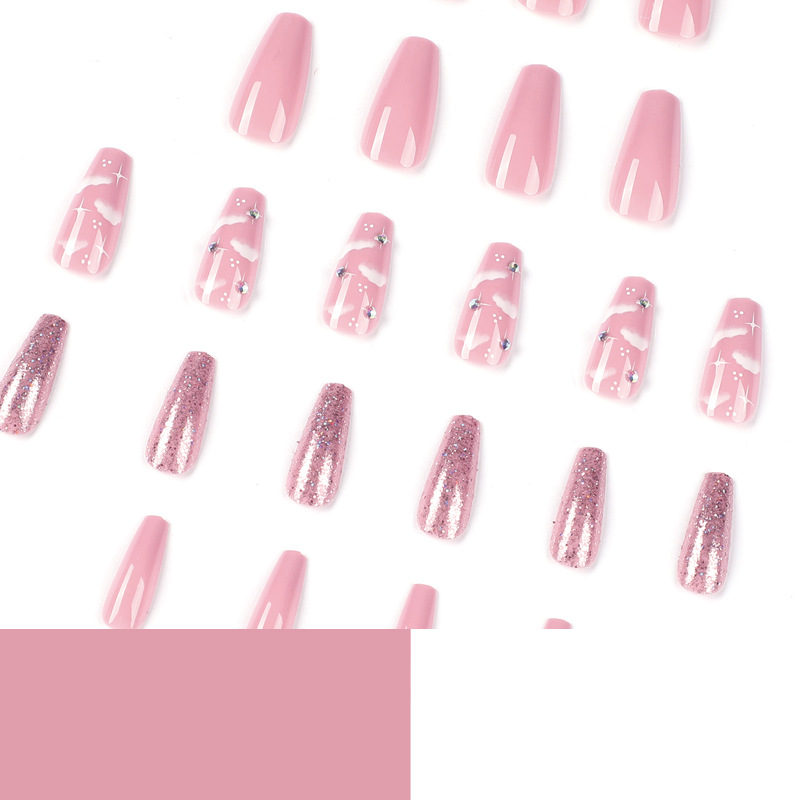 quantité de 穿戴美甲成品批发白色云朵水钻闪粉穿戴假甲片果冻胶美甲甲片成品