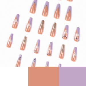 quantité de 穿戴美甲成品批发紫边法式白色蝴蝶水钻闪粉穿戴甲长款可拆卸甲片