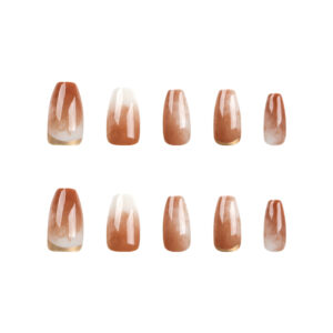 quantité de 美拉德穿戴甲甲片复古棕色晕染美甲指甲片简约秋季美甲片假指甲
