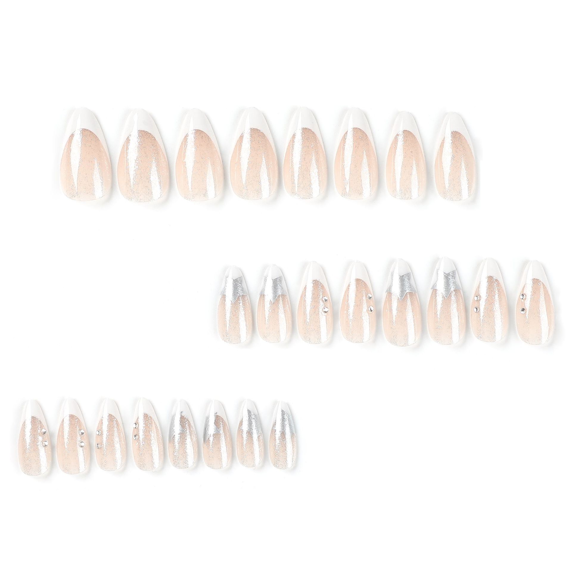 quantité de 美甲片成品白色法式银色五角星白色水钻美甲片成品可拆卸高级nail