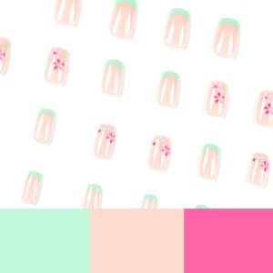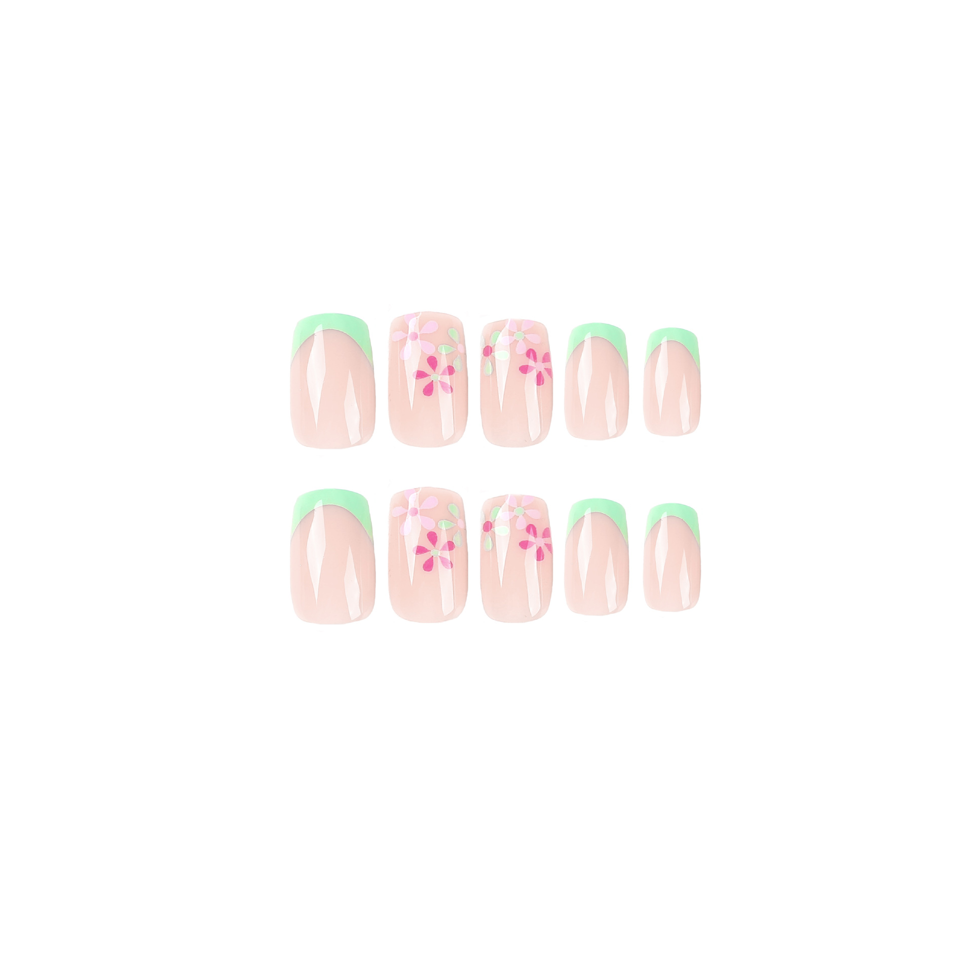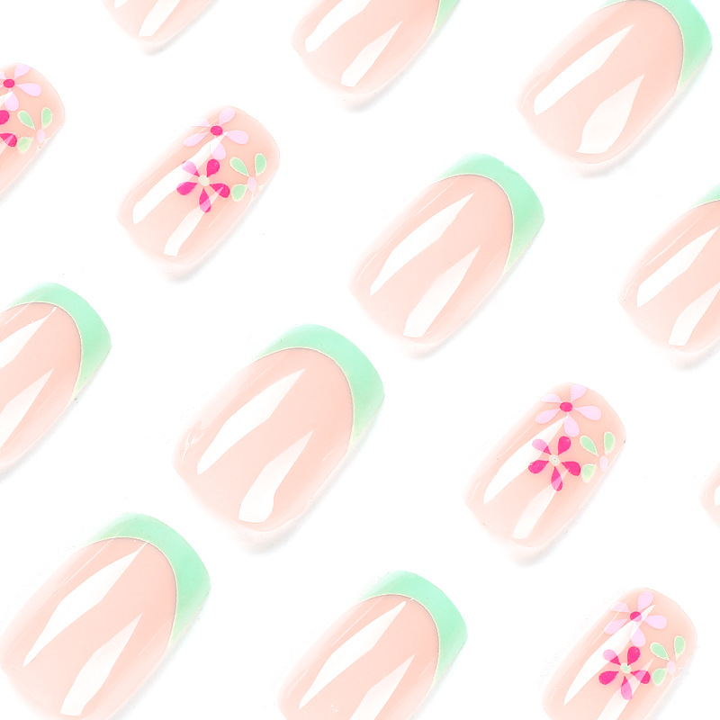quantité de 美甲穿戴甲绿色法式甲片成品绿粉花朵指甲贴可拆卸甲片成品甲片