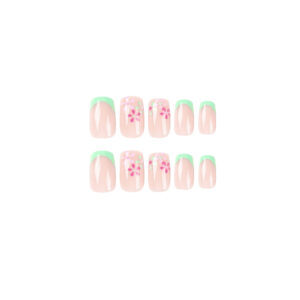 / 美甲穿戴甲绿色法式甲片成品绿粉花朵指甲贴可拆卸甲片成品甲片