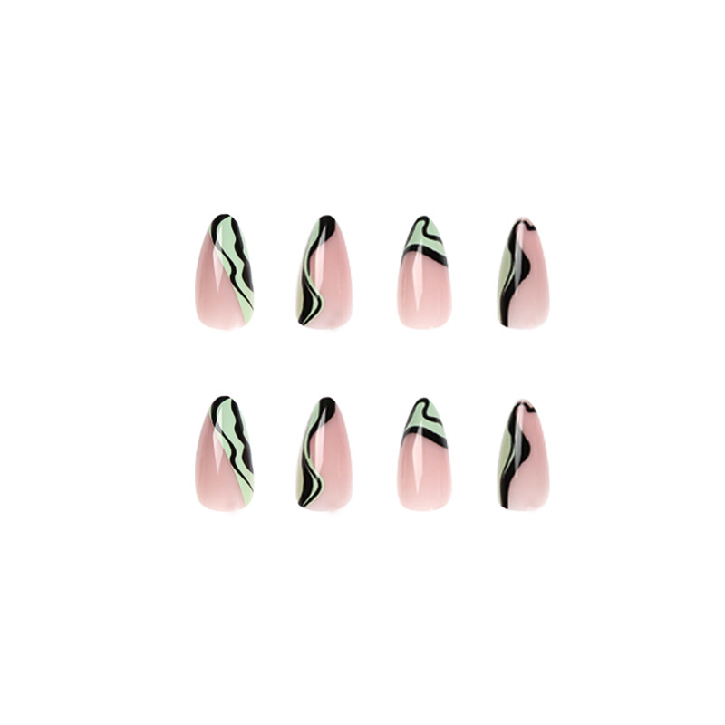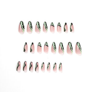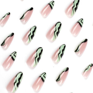 / 美甲贴片批发甲片简约绿法式黑色波浪甲片贴可拆卸美甲跨境美甲