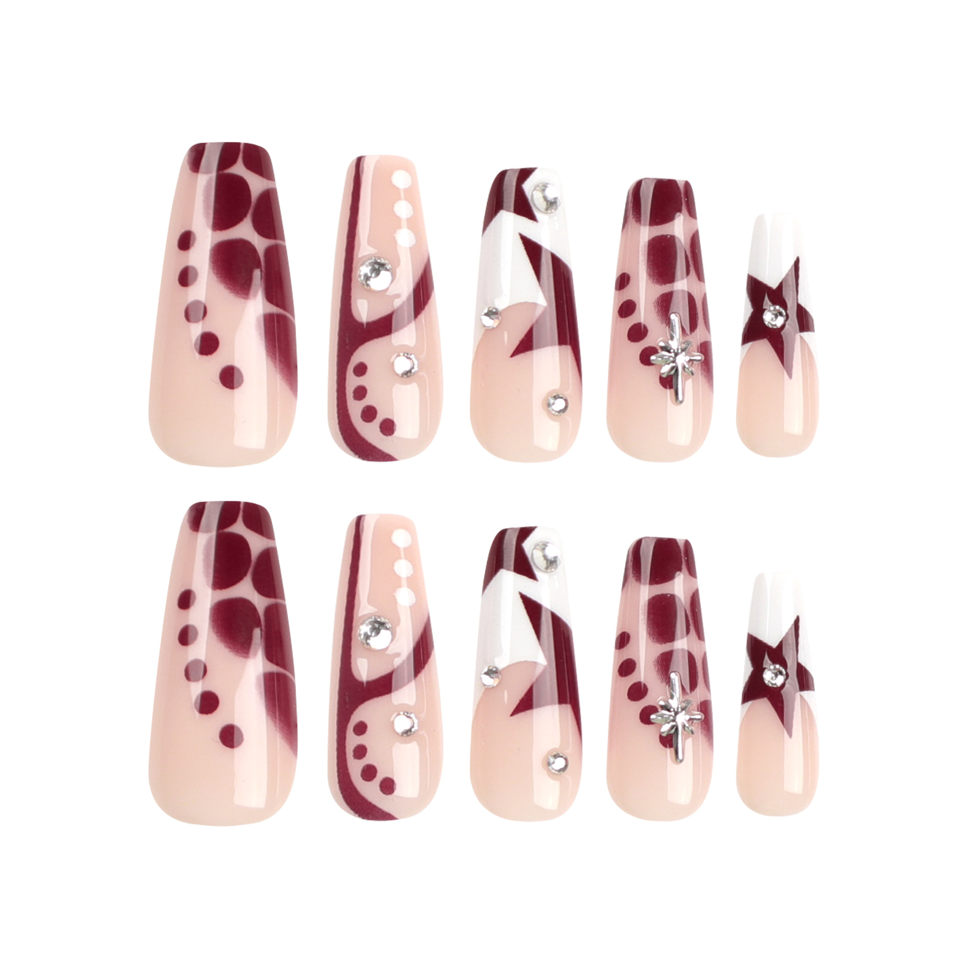 芭蕾甲美甲指甲片欧美穿戴甲指甲贴甲片闪钻星星美甲片假指甲批发