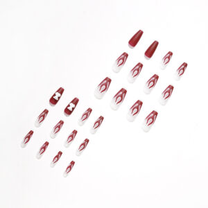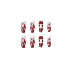 quantité de 酒红火焰小熊假指甲美甲贴片穿戴美甲成品假指甲防水可拆卸甲片
