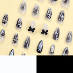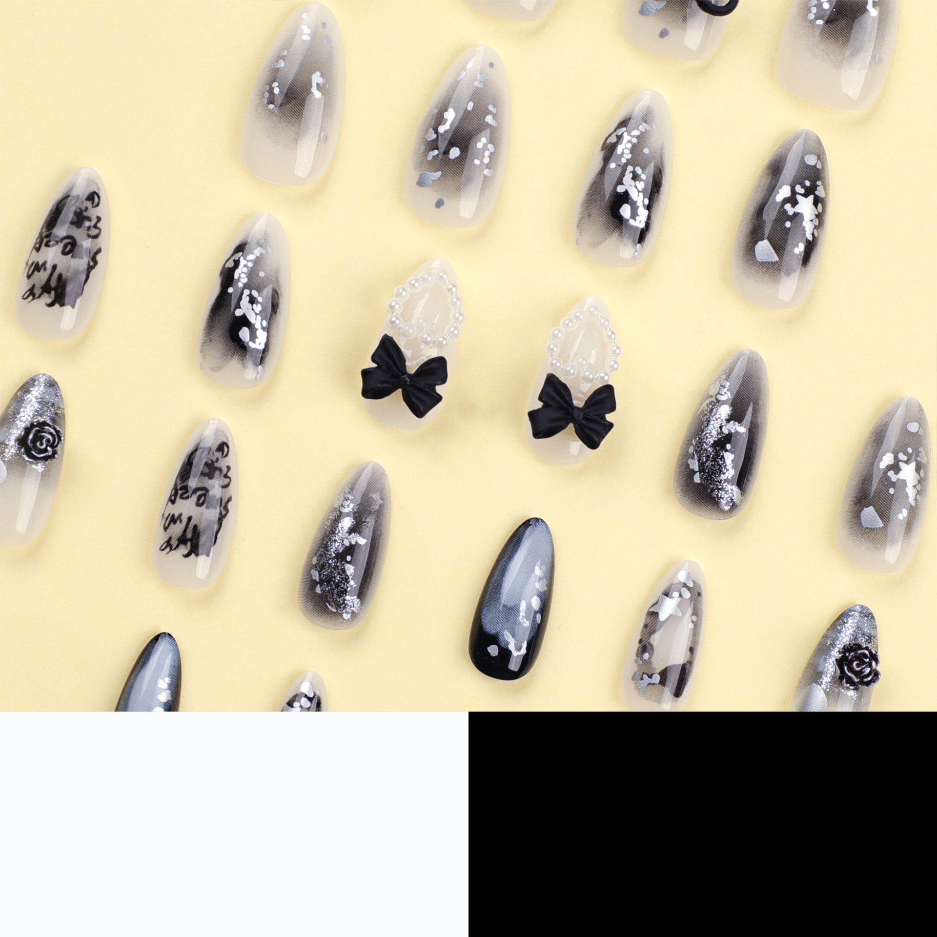 黑色立体蝴蝶结穿戴甲珍珠爱心星星美甲片渐变亮片字母杏仁甲甲片黑色立体蝴蝶结穿戴甲珍珠爱心星星美甲片渐变亮片字母杏仁甲甲片