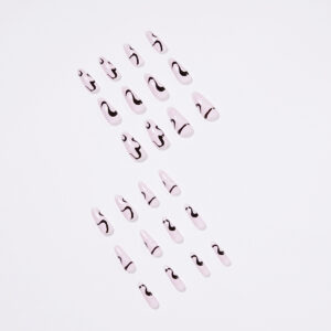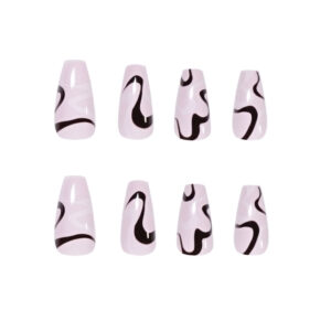 quantité de 黑白水浪穿戴甲简约风美甲贴片波浪美甲线条指甲贴片穿戴甲批发