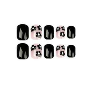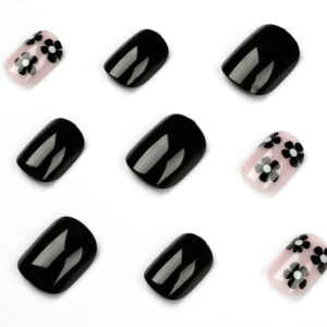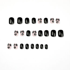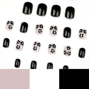 / 黑色小花穿戴甲甲片美甲甲片批发美甲片穿戴甲批发成品可穿戴甲片