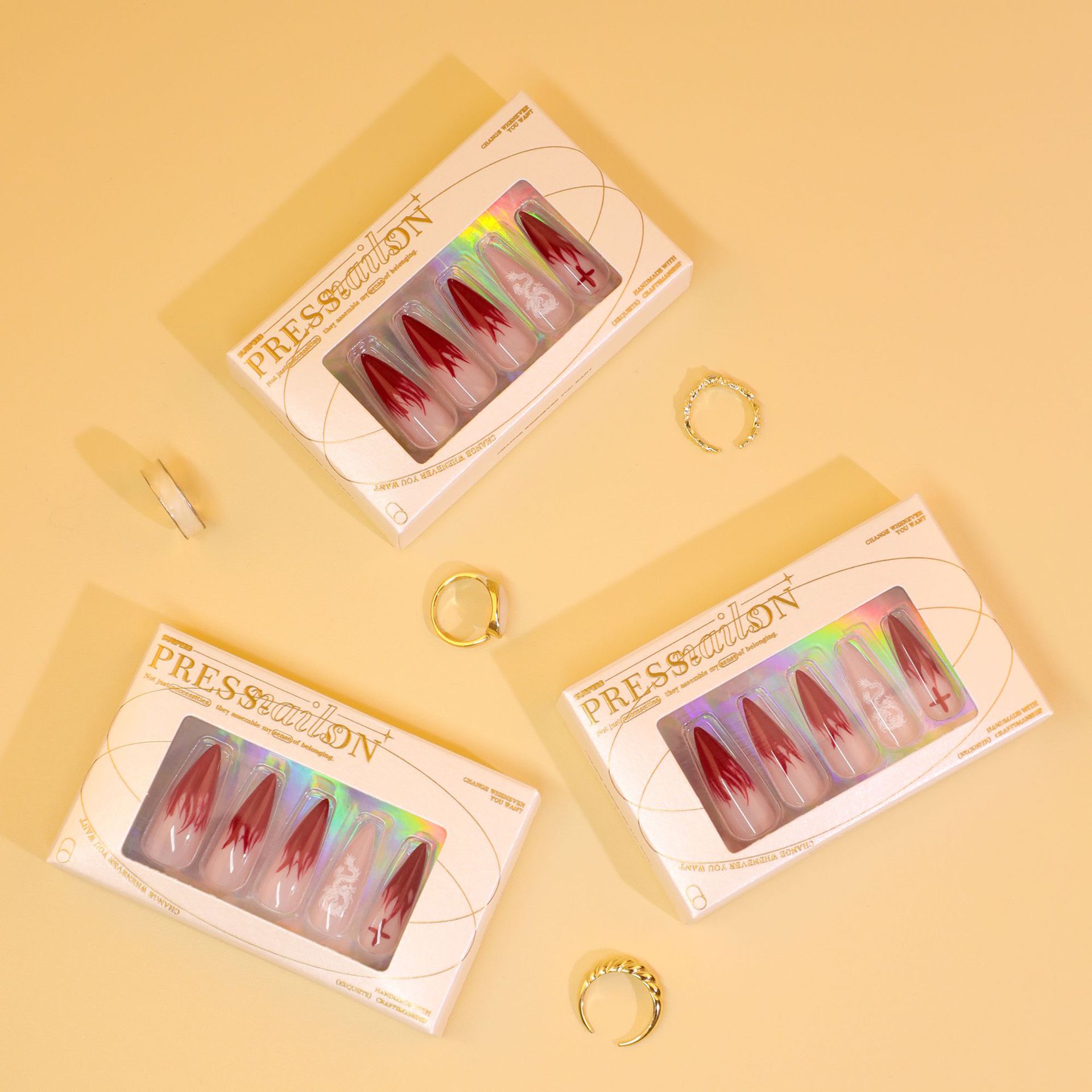 十字架红色火焰穿戴甲中国龙纹美甲中国风尖甲穿戴式美甲片批发十字架红色火焰穿戴甲中国龙纹美甲中国风尖甲穿戴式美甲片批发