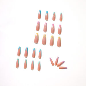 / 长芭蕾彩色法式穿戴美甲假指甲美甲贴片指甲片防水可拆卸甲片外贸