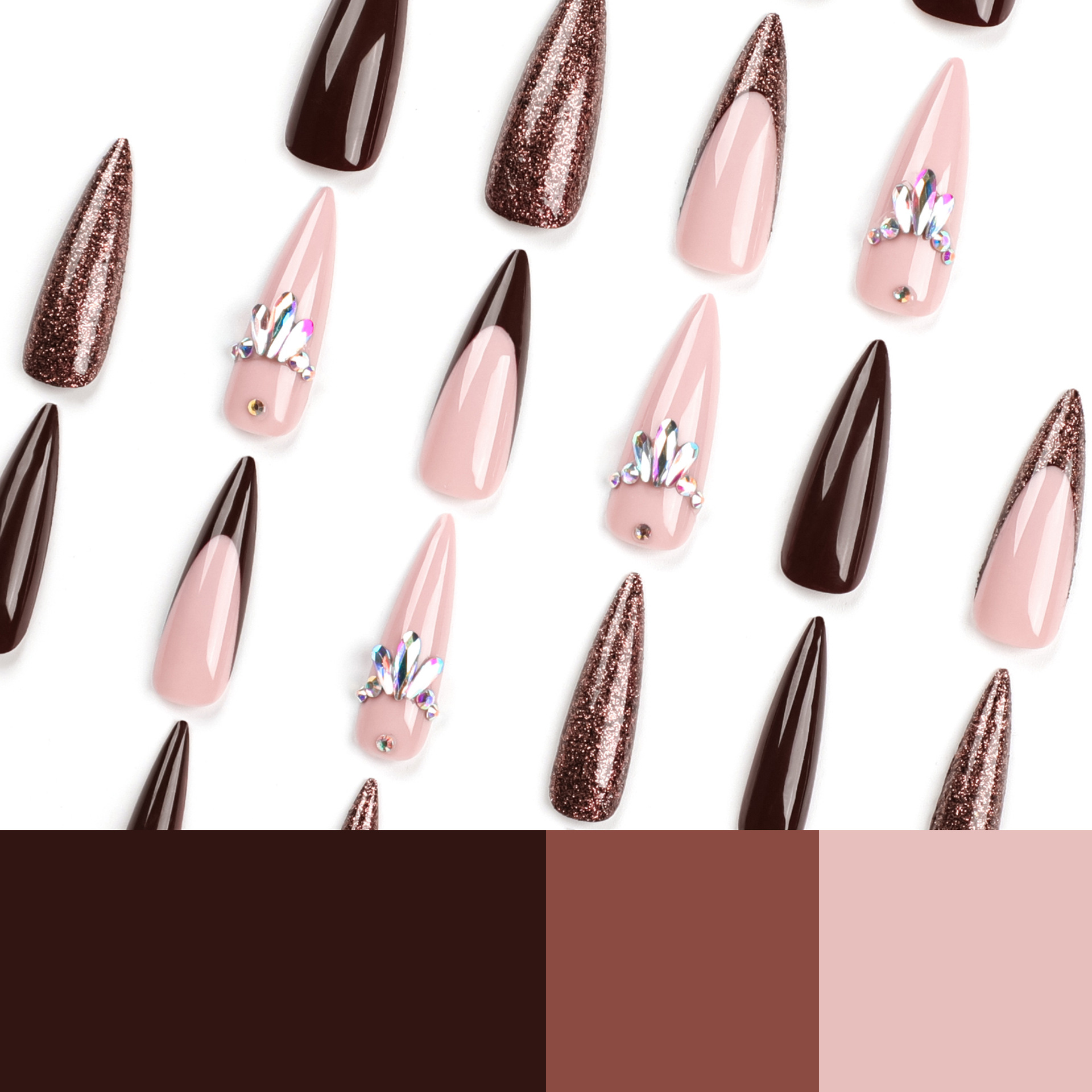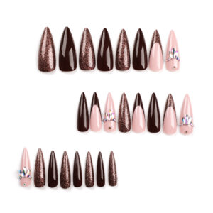 quantité de 长款尖甲秋冬显白穿戴甲批发美拉德美甲甲片彩钻法式假指甲nails