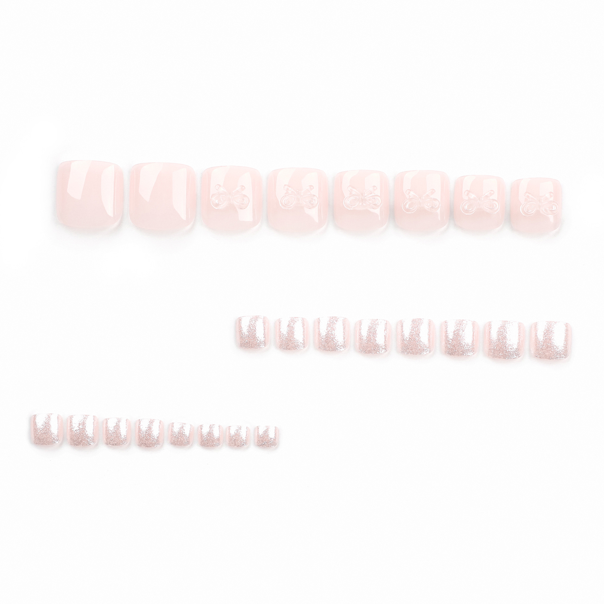 quantité de 简约银色闪粉假趾甲白色立体蝴蝶结脚甲美甲可拆卸甲片成品批发