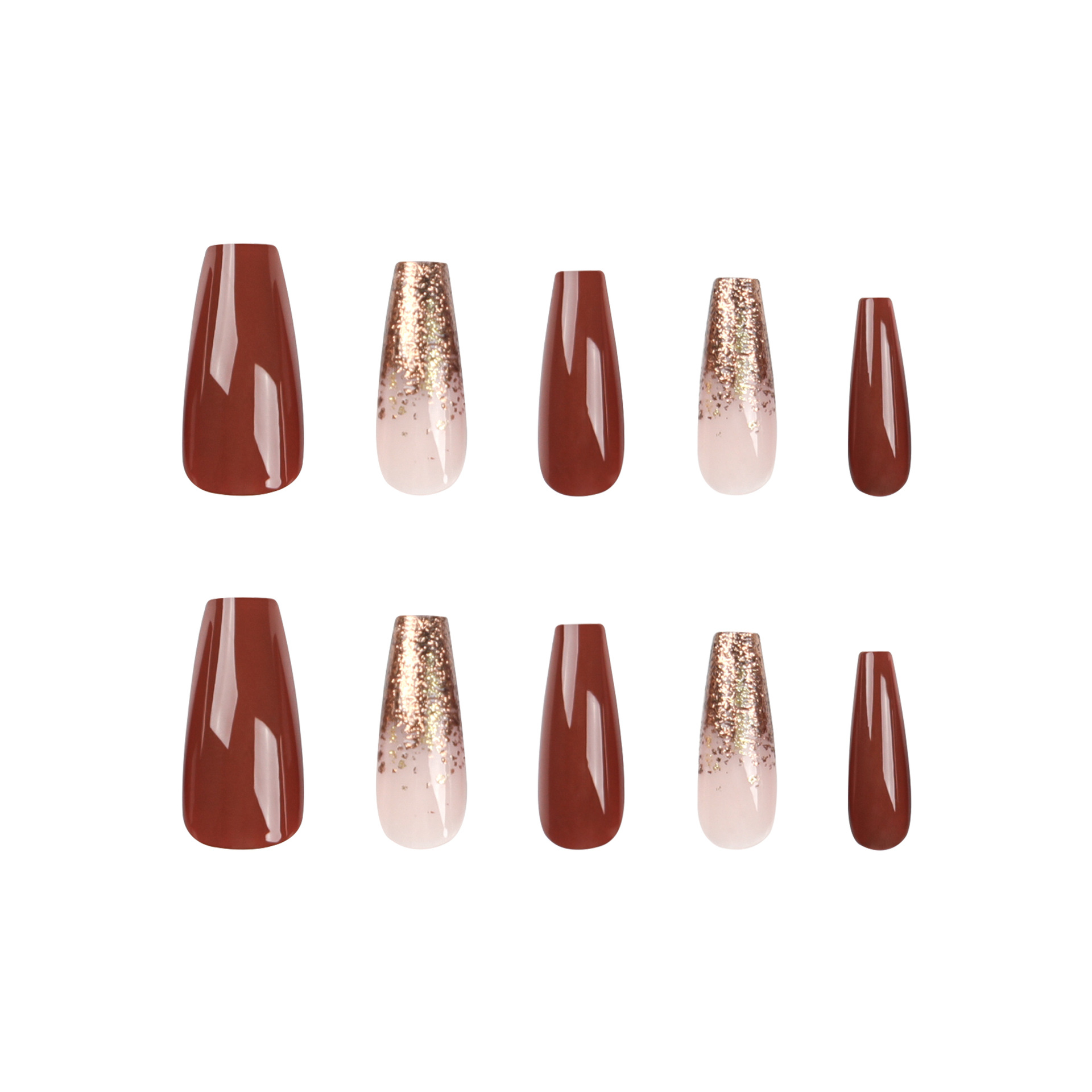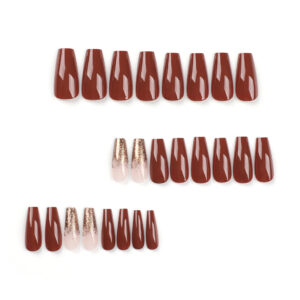 quantité de 简约纯色深咖色穿戴甲甲片批发假指甲裸色闪粉美甲秋冬新品指甲片