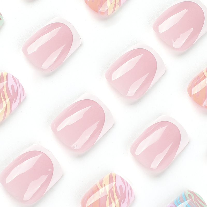 quantité de 可穿戴甲片成品白色法式美甲穿戴甲多色线条波浪假指甲可拆卸成品