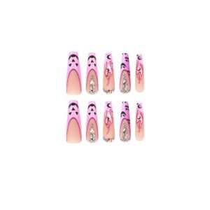 Faux ongles de ballet blanc perlé faux ongles bleu dégradé paillettes diamants portés automne et hiver blanchiment d'ongles