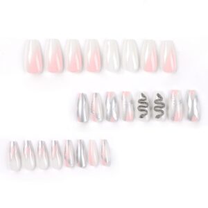 穿戴甲批发粉色晕染银色火焰链条立体蛇形水钻穿戴甲成品甲片nail