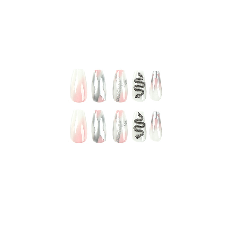 / 穿戴甲批发粉色晕染银色火焰链条立体蛇形水钻穿戴甲成品甲片nail