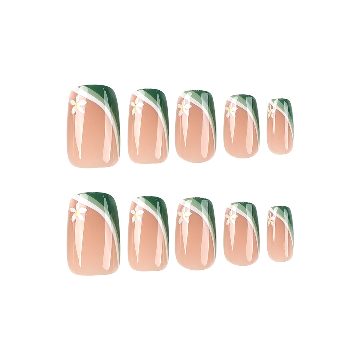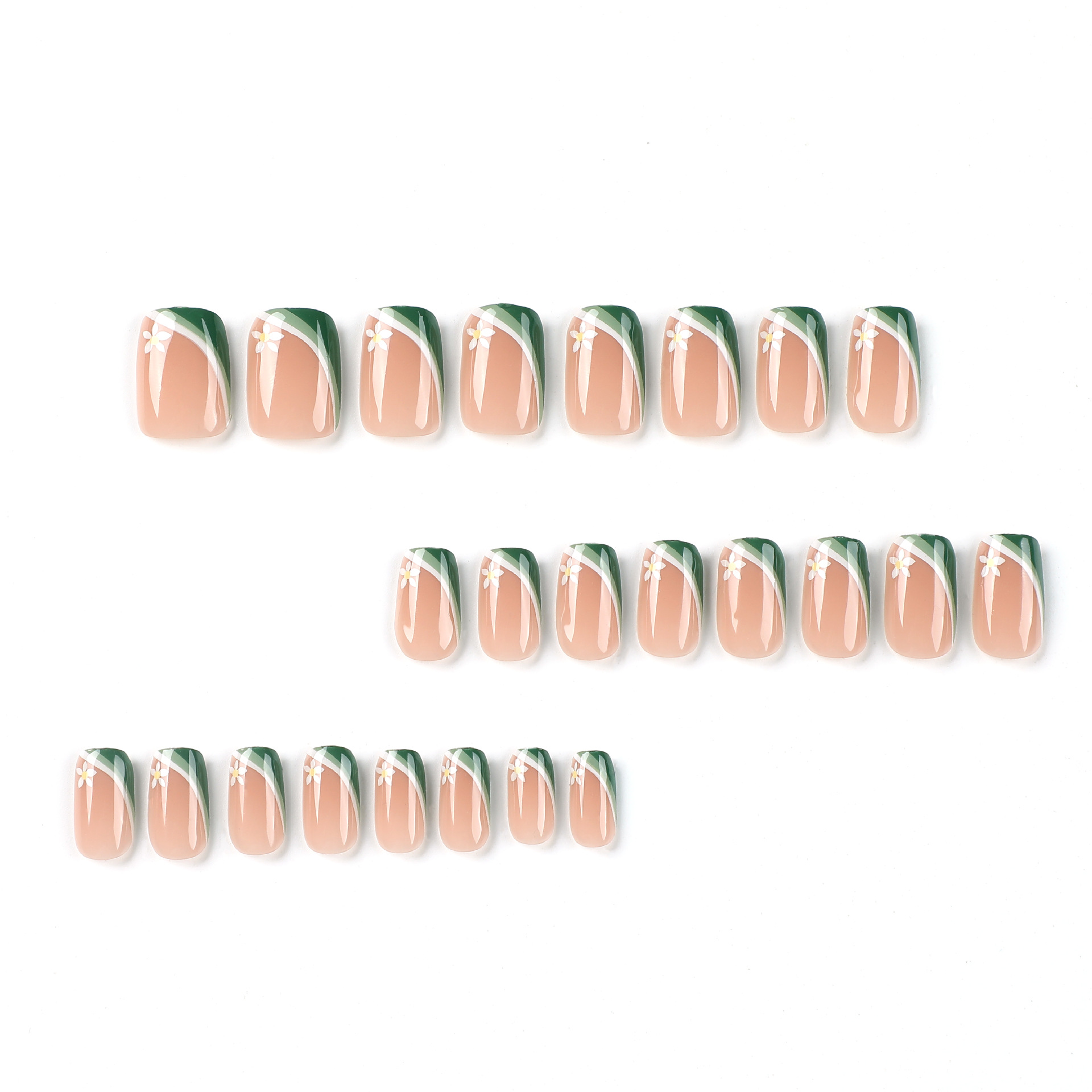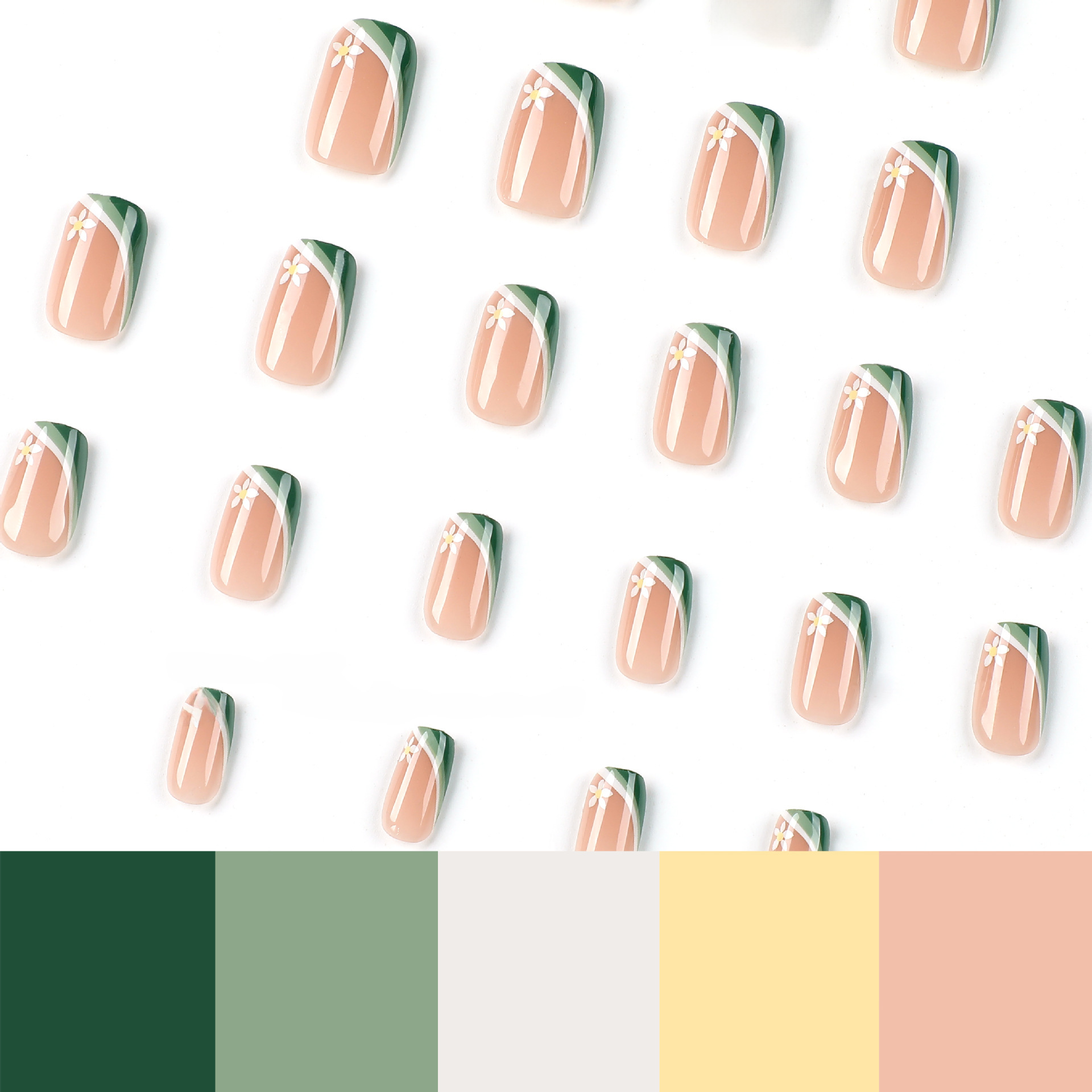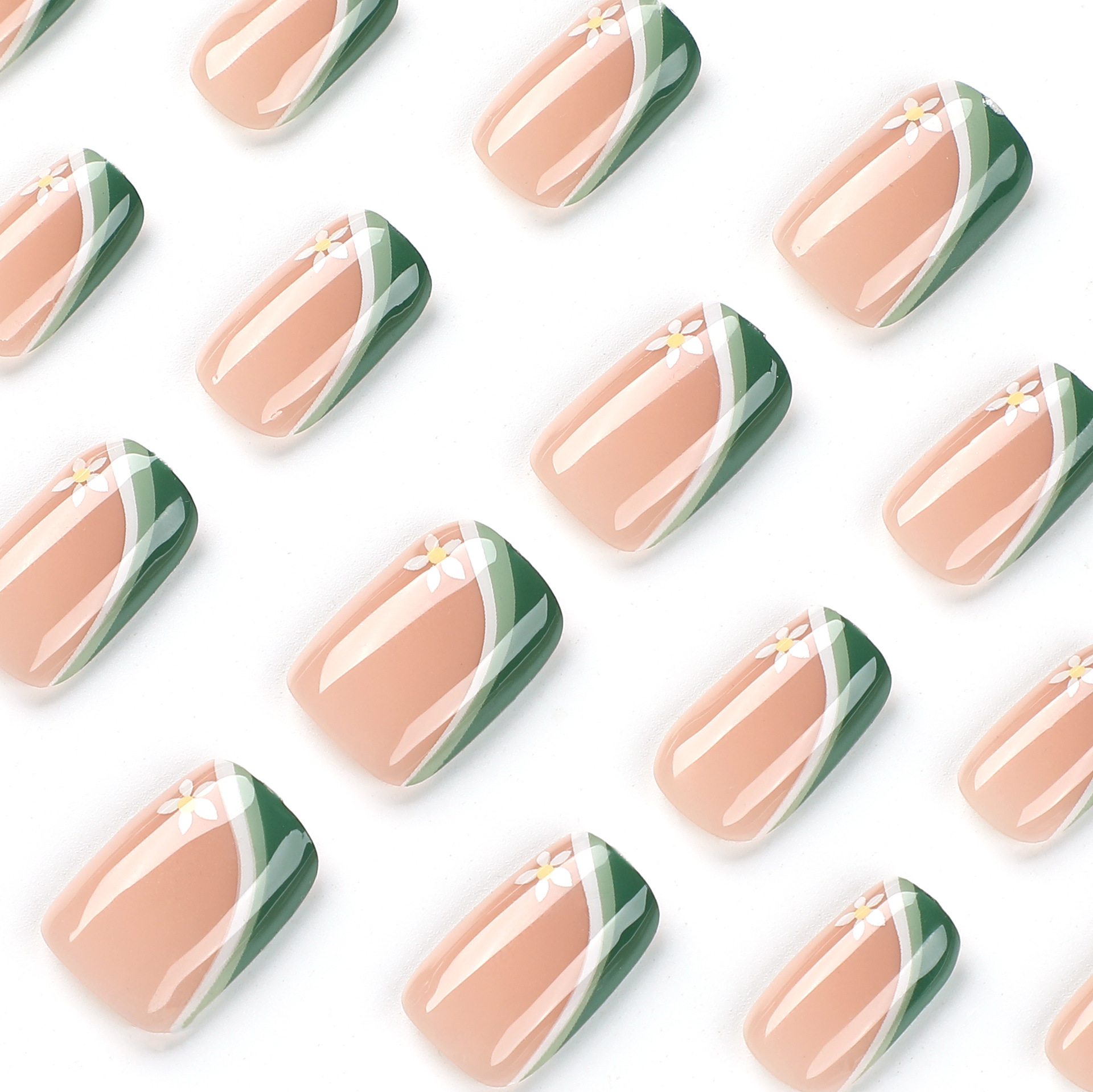 穿戴甲甲片清新绿白拼接法式白色花朵美甲片成品可拆卸高级nails穿戴甲甲片清新绿白拼接法式白色花朵美甲片成品可拆卸高级nails