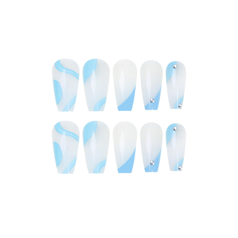 quantité de 穿戴美甲法式蓝系简约波浪水钻穿戴甲批发成品美甲甲片批发假指甲