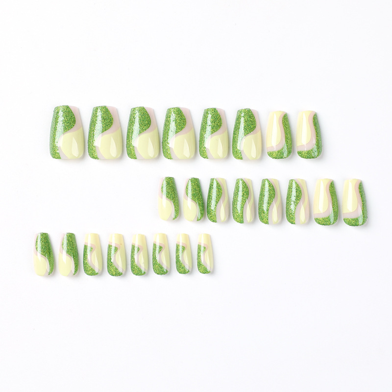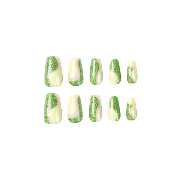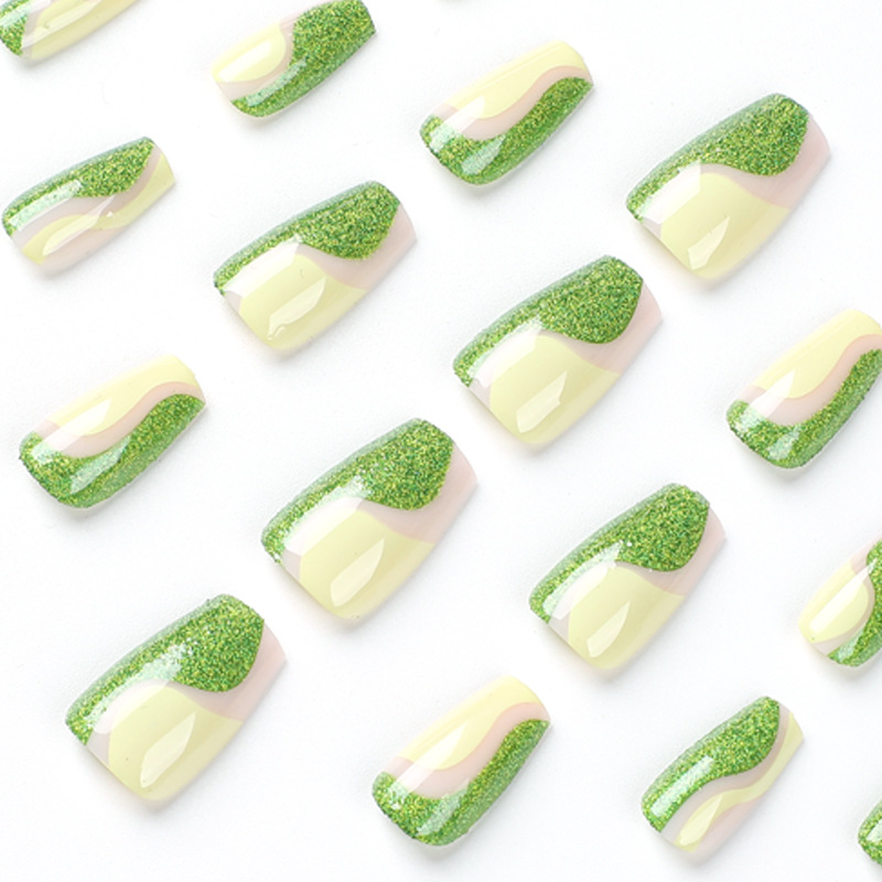 quantité de 穿戴美甲绿色短芭蕾珠光散粉可拆卸美甲穿戴甲批发短款假指甲片