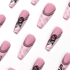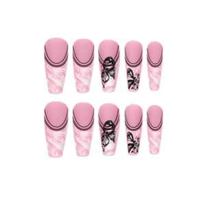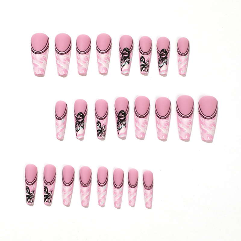 / 穿戴甲甜酷裸粉长芭蕾甲片成品蝴蝶晕染美甲片成品法式黑线指甲片