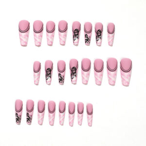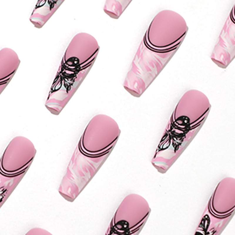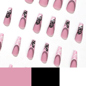quantité de 穿戴甲甜酷裸粉长芭蕾甲片成品蝴蝶晕染美甲片成品法式黑线指甲片