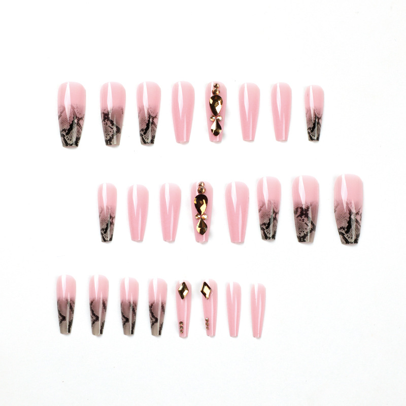 穿戴甲长款蛇纹水钻果冻胶美甲甲片美甲贴片批发甲片指甲片批发