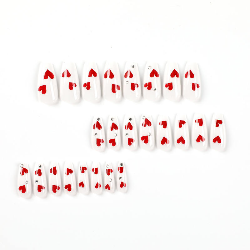quantité de 穿戴美甲情人节美甲水钻爱心穿戴甲中长款nail甲片可拆卸美甲成品