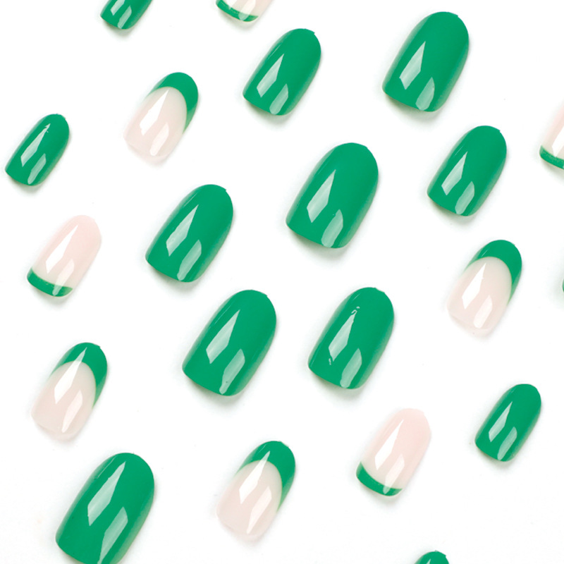 quantité de 美甲甲片批发穿戴甲 法式绿边简约美甲穿戴甲美甲贴片 false nail