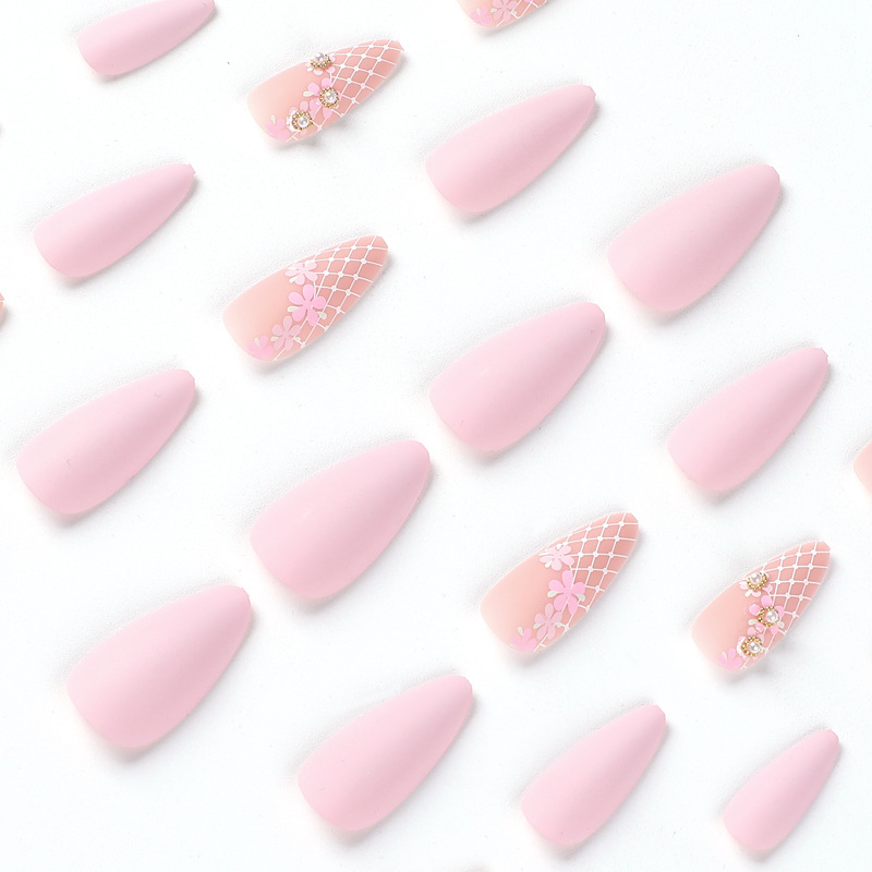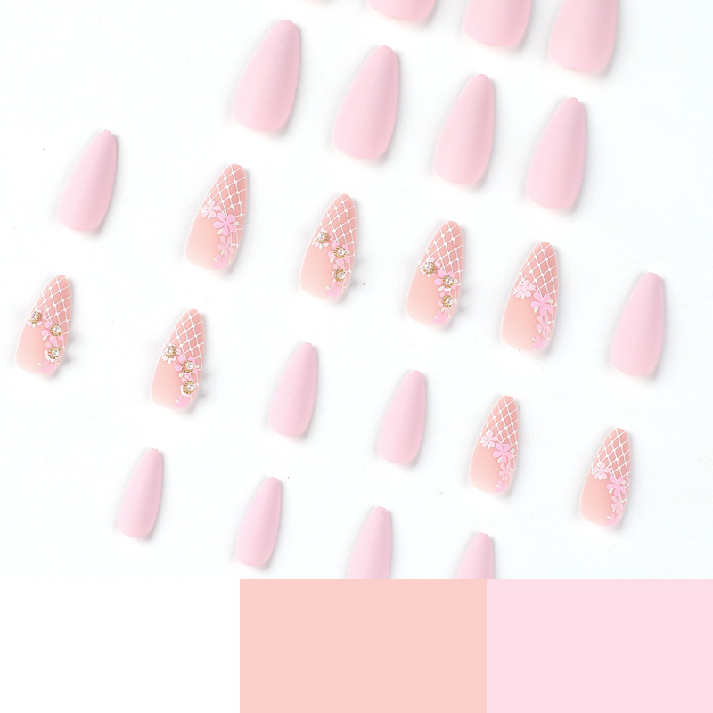 quantité de 穿戴甲批发磨砂美甲片粉嫩花花珍珠指甲贴片批发press on nails