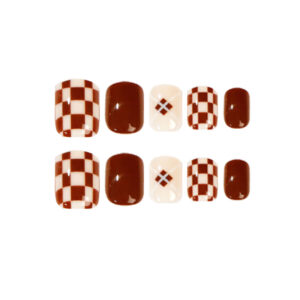 / 棋盘格美甲穿戴式美甲贴片指甲贴片棕咖色假指甲穿戴甲成品 批发