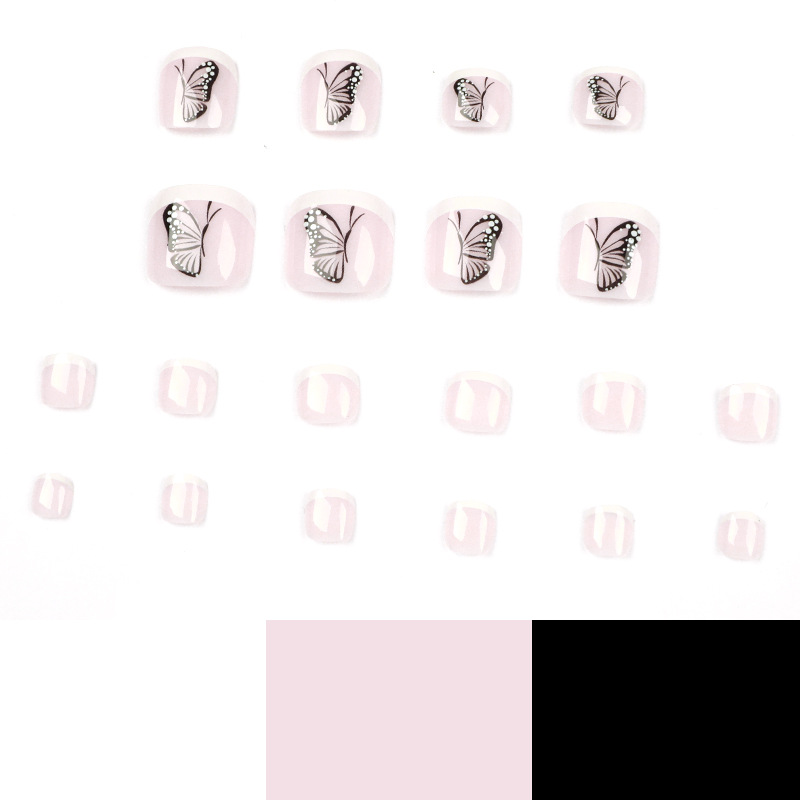 白边法式脚甲蝴蝶穿戴式美甲批发美甲贴片成品甲片批发甲片nails個