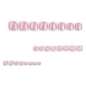 / 短款穿戴脚甲可拆卸法式脚趾甲贴片甲片新款白色条纹脚款美甲批发