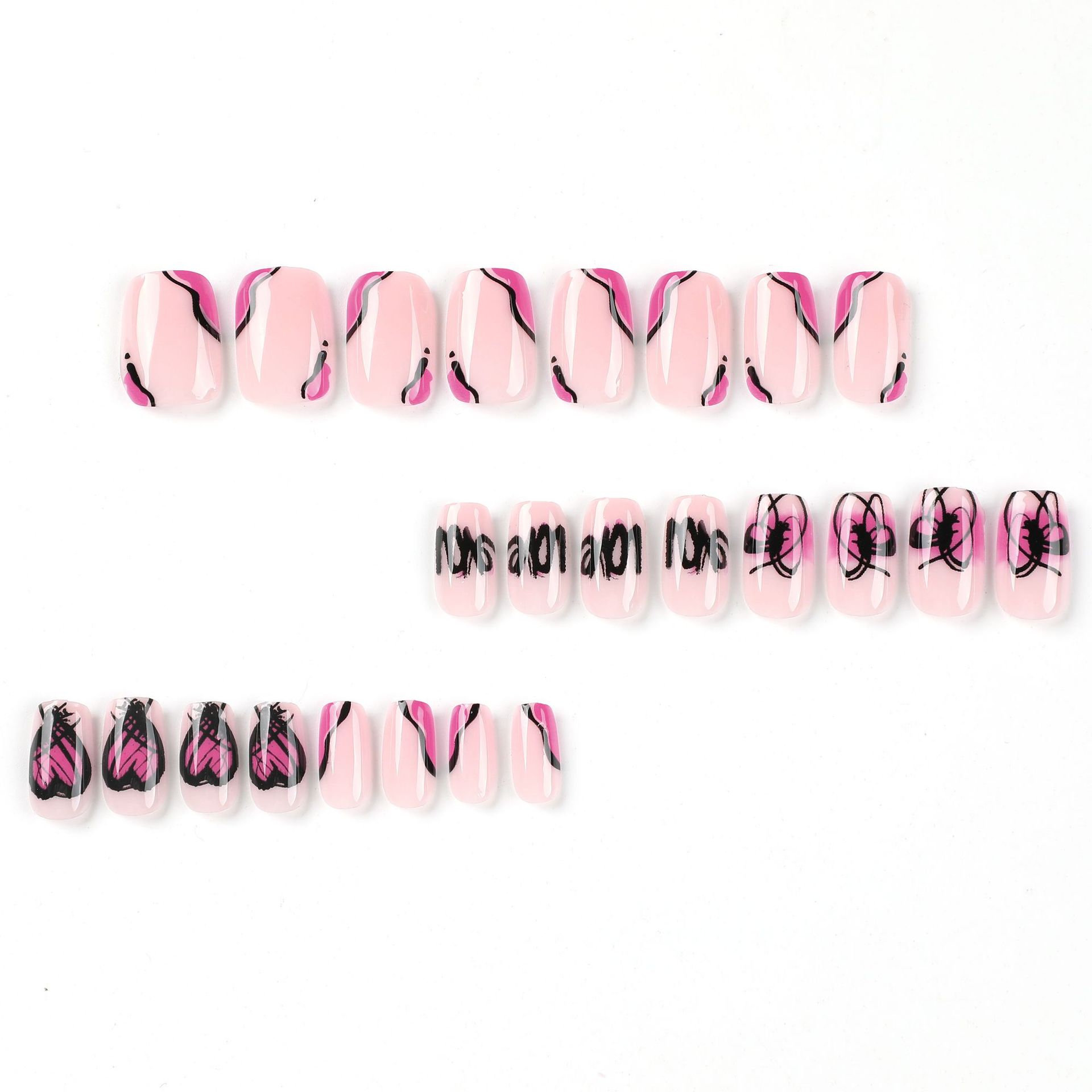 / 穿戴式指甲贴紫色斜边法式黑色线条提亚搭配紫色晕染美甲甲片批发