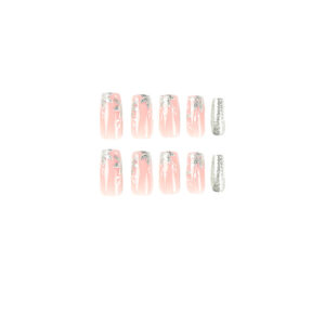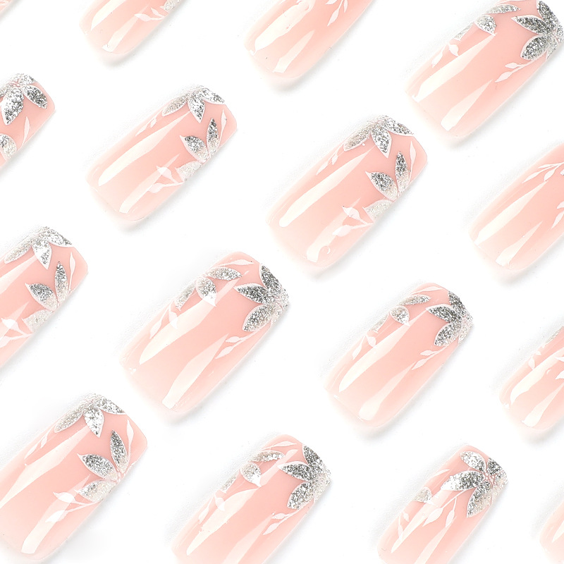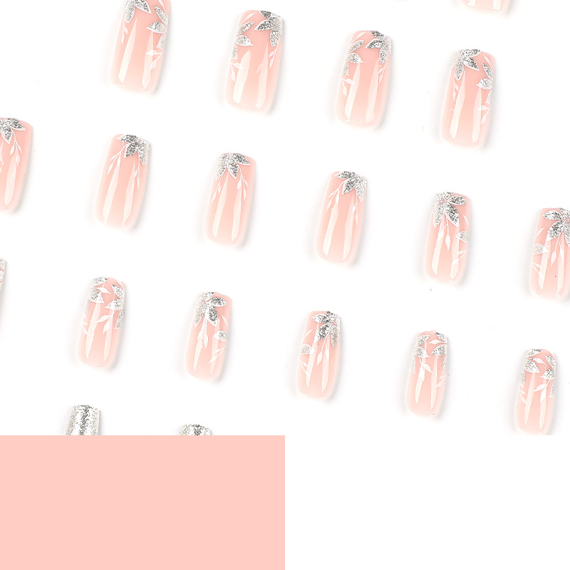 / 穿戴式美甲贴片银色闪粉枫叶穿戴甲 欧美美甲片成品可拆卸nails