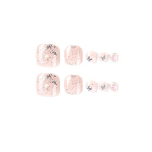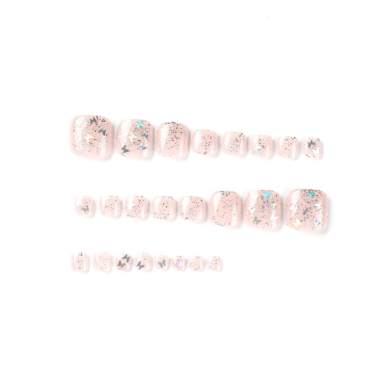 / 穿戴甲批发银色闪粉蝴蝶亮片脚趾甲穿戴甲美甲甲片批发甲片穿戴甲