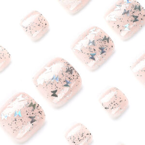 穿戴甲批发银色闪粉蝴蝶亮片脚趾甲穿戴甲美甲甲片批发甲片穿戴甲
