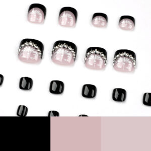 / 穿戴甲批发黑法式脚指甲白花堆钻甲片成品假指甲美甲贴片穿戴甲片