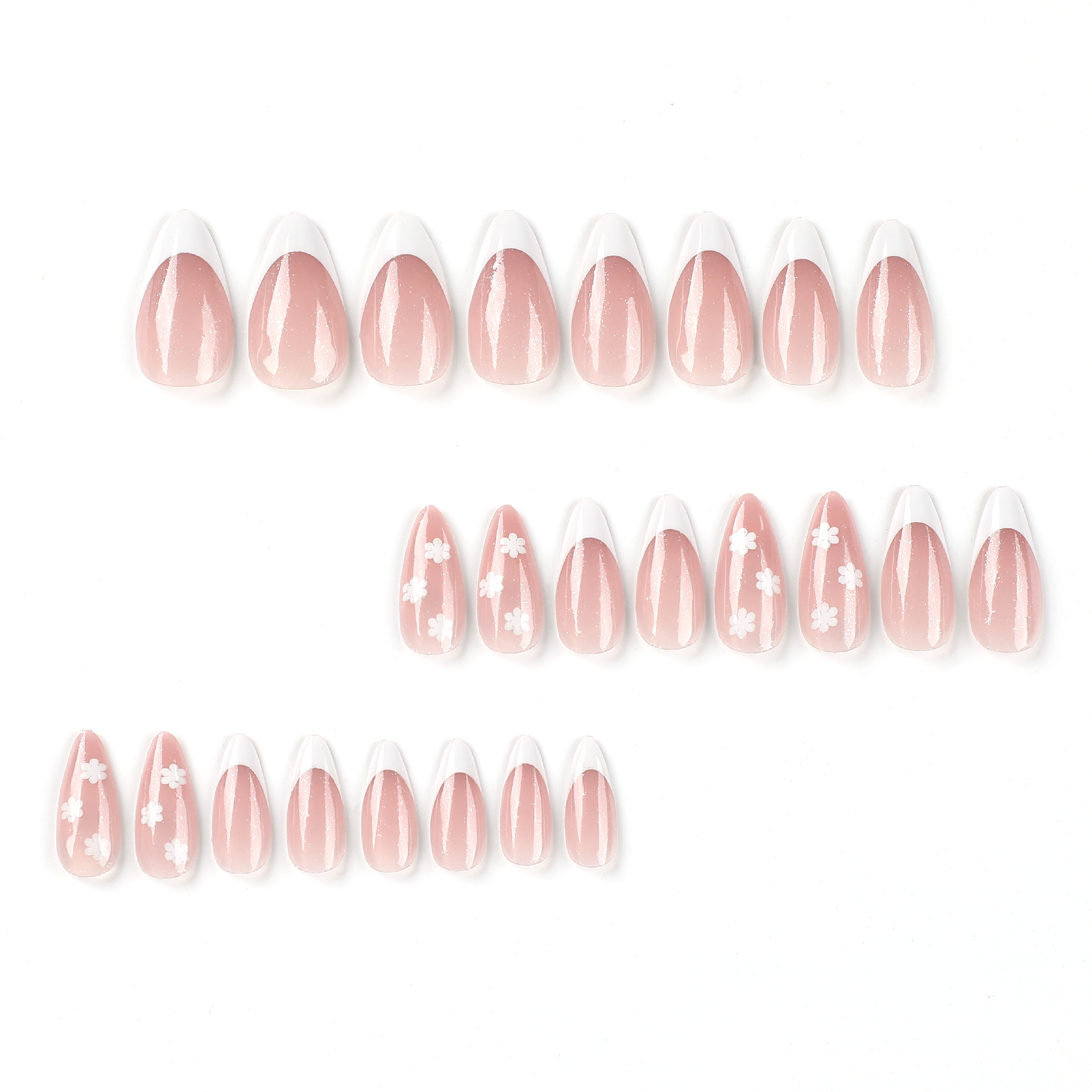 穿戴甲片批发白色法式搭配花朵细细闪粉指甲片批发美甲成品nails穿戴甲片批发白色法式搭配花朵细细闪粉指甲片批发美甲成品nails