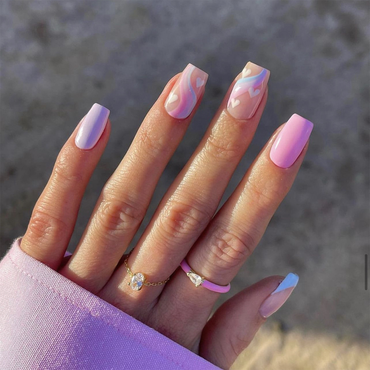 / 穿戴甲片批发蓝色法式紫色甲片多色波浪白色爱心甲片成品批发nail