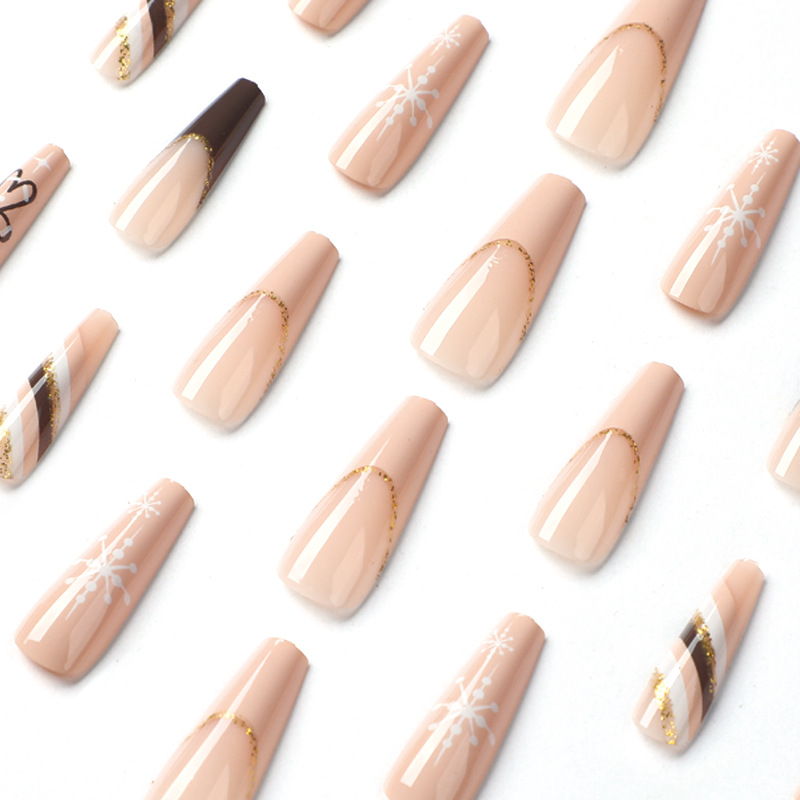 穿戴甲甲片批发棕色法式贴片甲假指甲姜饼人条纹闪粉甲片成品批发個