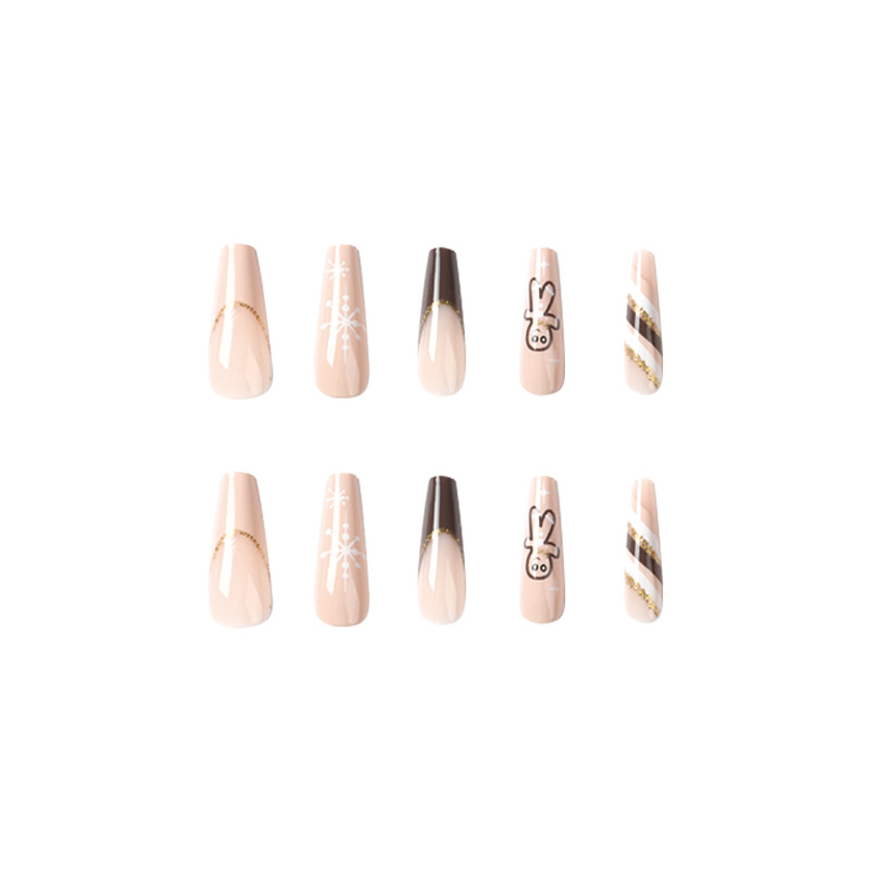 穿戴甲甲片批发棕色法式贴片甲假指甲姜饼人条纹闪粉甲片成品批发