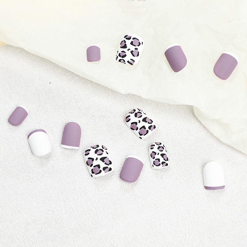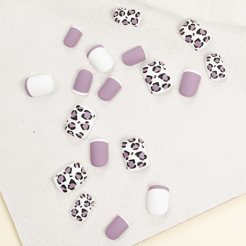 穿戴甲美甲贴片薰衣草紫豹纹美甲显白指甲贴片穿戴式美甲批nails
