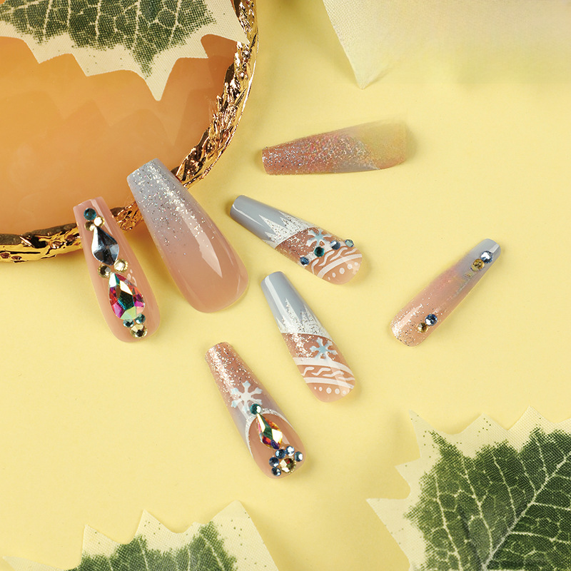 穿戴甲雪花闪粉蓝色法式边甲片批发水钻圣诞美甲片美甲成品nails穿戴甲雪花闪粉蓝色法式边甲片批发水钻圣诞美甲片美甲成品nails