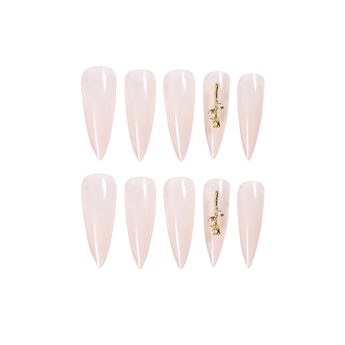 / 裸色长尖甲玫瑰穿戴甲成品假指甲美甲贴片指甲贴片防水可拆卸甲片