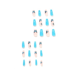 / 蝴蝶美甲天蓝色穿戴甲中长款假指甲press on nail可拆卸 甲片批发