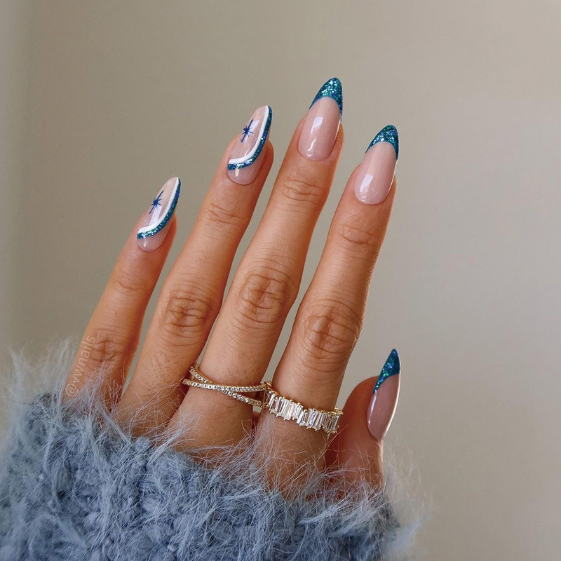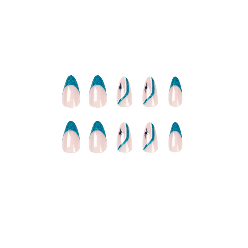 / 穿戴甲甲片批发穿戴甲 法式简约蓝色闪粉星芒蓝白拼色甲片 穿戴甲