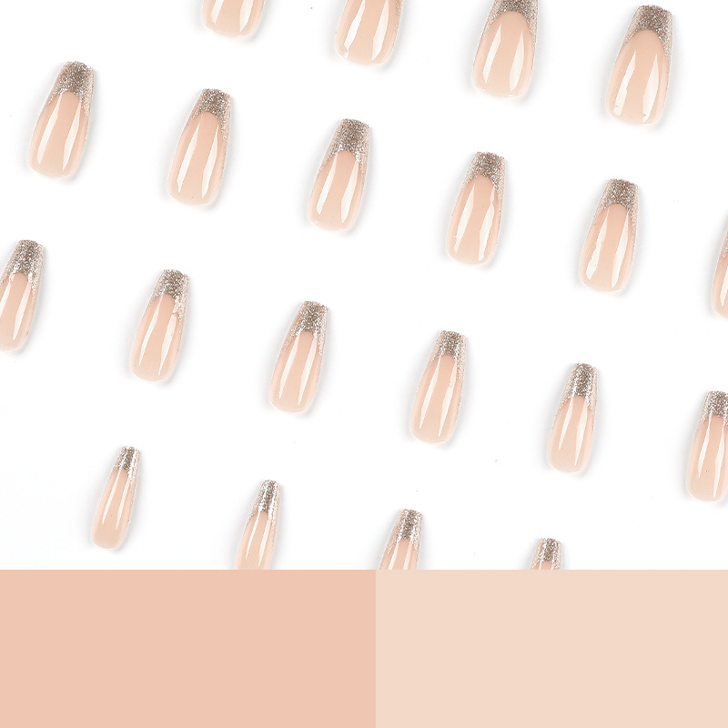 穿戴美甲金色闪粉法式穿戴美甲成品批发贴甲片批发press on nails