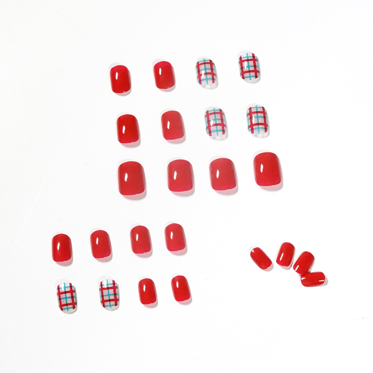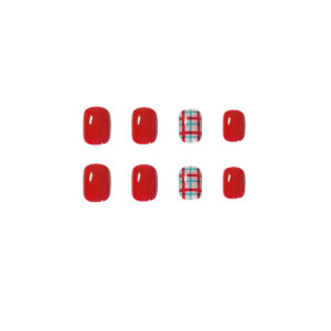 / 穿戴式指甲贴片假指甲美甲贴片显白酒红色美甲英伦格子穿戴甲成品