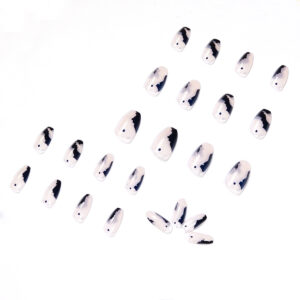 爪の白と茶色のパッチワークの斜めフレンチ摩耗つけ爪爪爪クリップ爪クリップ卸売つけ爪を押してください。